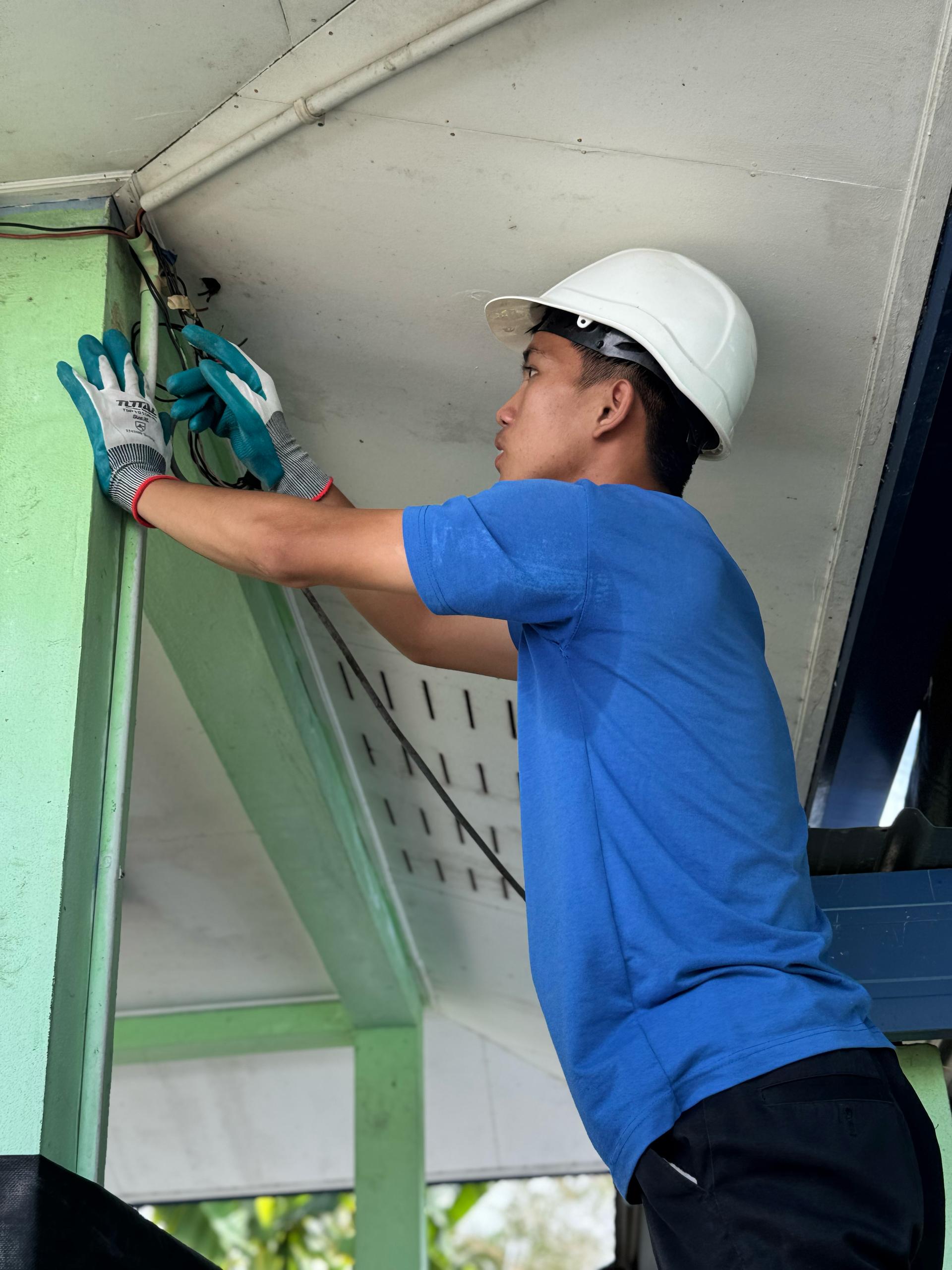 Student from Giatmara Keningau doing electrical works at one of the surau in Keningau |
